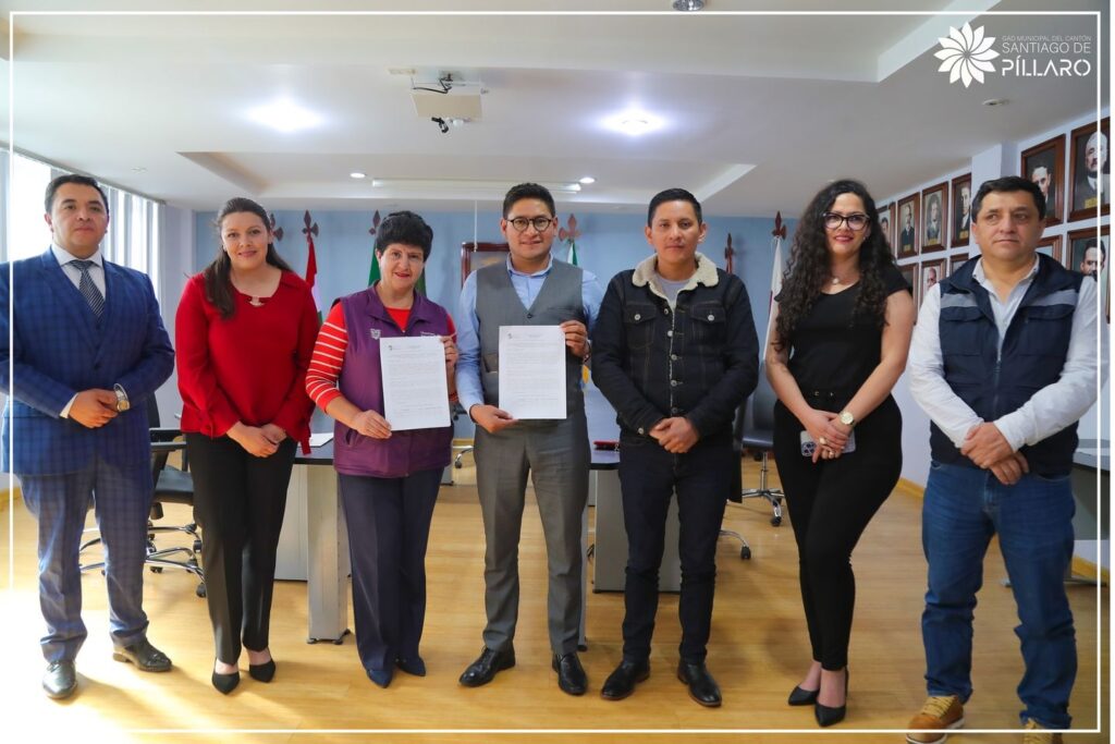 Hoy, el GADM Santiago de Píllaro y el Hospital Básico han formalizado un convenio de cooperación institucional, 𝐄𝐥 𝐀𝐛𝐠. 𝐈𝐬𝐫𝐚𝐞𝐥 𝐂𝐡𝐢𝐜𝐚𝐢𝐳𝐚, 𝐀𝐥𝐜𝐚𝐥𝐝𝐞 𝐝𝐞 𝐏𝐢́𝐥𝐥𝐚𝐫𝐨, 𝐲 𝐥𝐚 𝐌𝐠𝐬. 𝐒𝐢𝐥𝐯𝐢𝐚 𝐁𝐚𝐫𝐫𝐢𝐨𝐧𝐮𝐞𝐯𝐨, 𝐃𝐢𝐫𝐞𝐜𝐭𝐨𝐫𝐚 𝐝𝐞𝐥 𝐇𝐨𝐬𝐩𝐢𝐭𝐚𝐥 𝐁𝐚́𝐬𝐢𝐜𝐨, han firmado el acuerdo para la entrega de materiales destinados a la construcción del contrapiso en la entrada a la central de oxígeno.