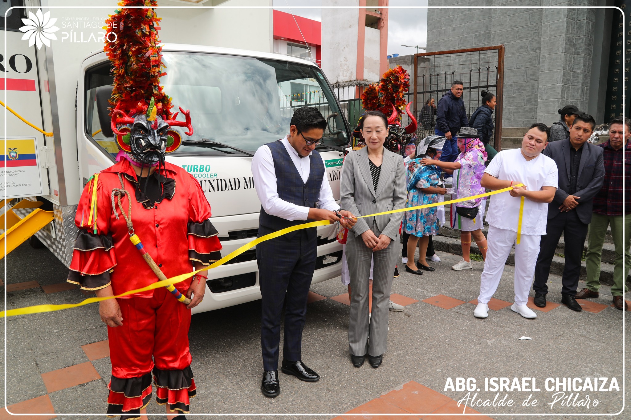 El Abg. Israel Chicaiza Alcalde de Pillaro, en cooperaciรณn con el pueblo japonรฉs, representado por la concejera Yuki, inauguraron la unidad mรฉdica mรณvil, una valiosa donaciรณn de la Embajada de Japรณn.![]()