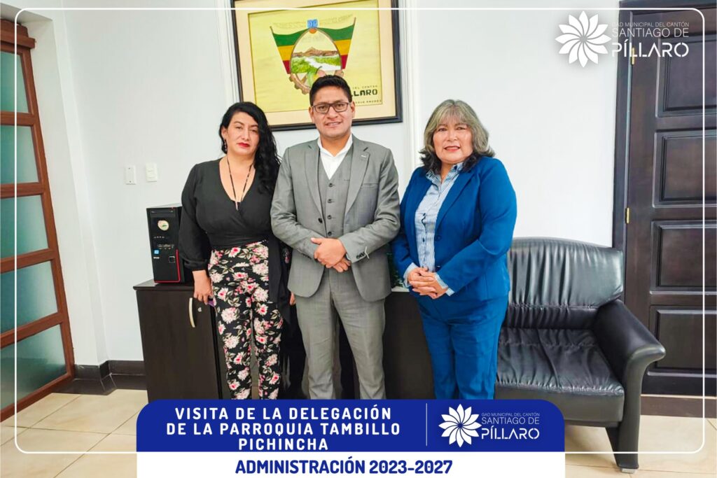 Durante la reuniรณn, la Presidenta de dicho GAD extendiรณ una cordial invitaciรณn al Alcalde para que sea partรญcipe en las diversas actividades programadas en conmemoraciรณn de los 141 aรฑos de parroquializaciรณn de Tambillo.