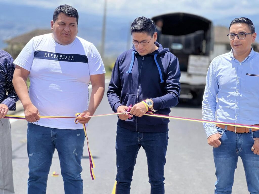 El ๐๐๐ . ๐๐ฌ๐ซ๐๐๐ฅ ๐๐ก๐ข๐๐๐ข๐ณ๐, ๐๐ฅ๐๐๐ฅ๐๐ ๐๐ ๐๐ขฬ๐ฅ๐ฅ๐๐ซ๐จ, junto al presidente de la parroquia, Sr. Paul Tituaรฑa, y lรญderes del barrio, llevaron a cabo el recorrido para recibir la obra.