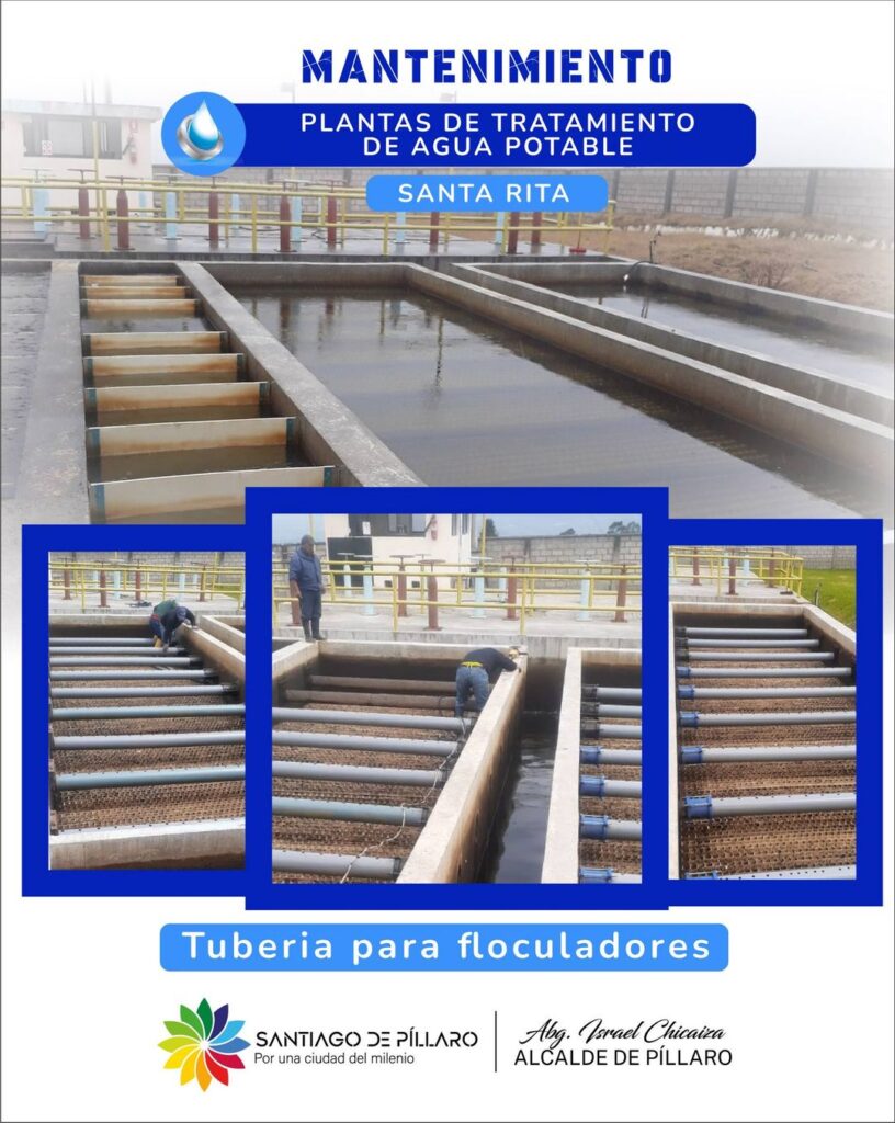 Con el objetivo de mejorar la oxigenaciรณn y potabilizaciรณn del agua de consumo , la municipalidad de Pรญllaro, bajo el liderazgo del alcalde Israel Chicaiza, ha realizado el mantenimiento de la Planta de Santa Rita.