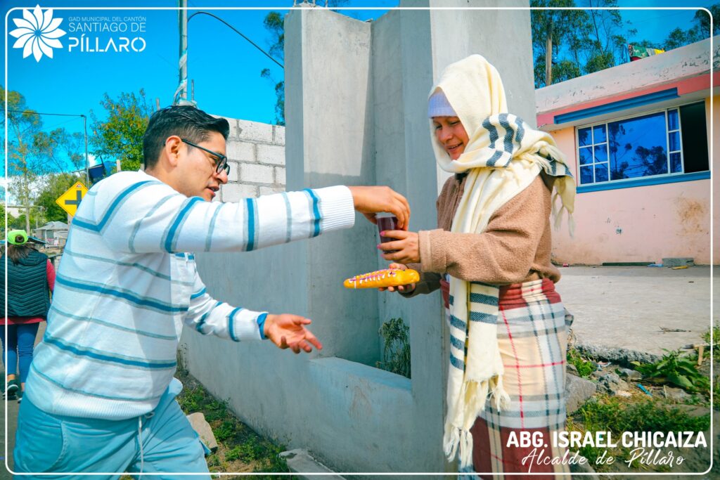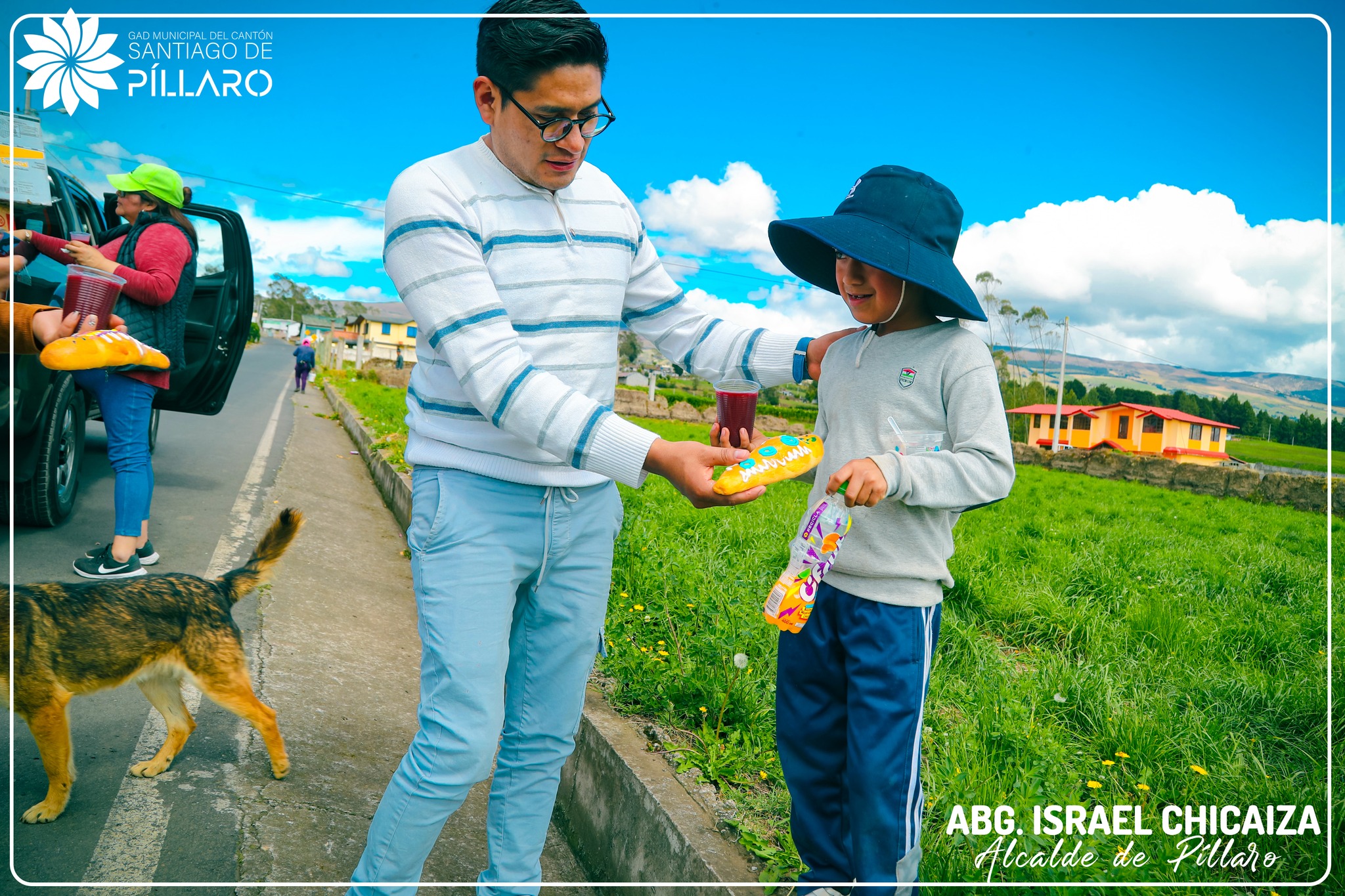 El 𝐀𝐥𝐜𝐚𝐥𝐝𝐞, 𝐈𝐬𝐫𝐚𝐞𝐥 𝐂𝐡𝐢𝐜𝐚𝐢𝐳𝐚, 𝐣𝐮𝐧𝐭𝐨 𝐚 𝐥𝐚 𝐏𝐫𝐢𝐦𝐞𝐫𝐚 𝐃𝐚𝐦𝐚, 𝐄𝐯𝐞𝐥𝐲𝐧 𝐑𝐚𝐦𝐢́𝐫𝐞𝐳 y su equipo de trabajo, compartieron la deliciosa 𝐜𝐨𝐥𝐚𝐝𝐚 𝐦𝐨𝐫𝐚𝐝𝐚 𝐜𝐨𝐧 𝐠𝐮𝐚𝐠𝐮𝐚𝐬 𝐝𝐞 𝐩𝐚𝐧 🥖💜 por todas las parroquias rurales de nuestro querido cantón Píllaro. Una actividad llena de humildad y compromiso donde nuestras autoridades recorrieron el campo, las calles principales y secundarias, llevando un momento de alegría a 𝐧𝐢𝐧̃𝐨𝐬, 𝐚𝐝𝐮𝐥𝐭𝐨𝐬 𝐲 𝐩𝐞𝐫𝐬𝐨𝐧𝐚𝐬 𝐯𝐮𝐥𝐧𝐞𝐫𝐚𝐛𝐥𝐞𝐬. 💪👧👵