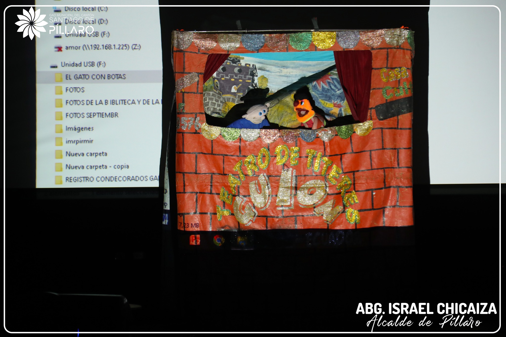 El 𝐀𝐥𝐜𝐚𝐥𝐝𝐞, 𝐈𝐬𝐫𝐚𝐞𝐥 𝐂𝐡𝐢𝐜𝐚𝐢𝐳𝐚 𝐲 𝐥𝐚 𝐏𝐫𝐢𝐦𝐞𝐫𝐚 𝐃𝐚𝐦𝐚 𝐝𝐞𝐥 𝐂𝐚𝐧𝐭𝐨́𝐧 participaron en el taller de teatro, lectura de cuentos y presentación de títeres, organizado por la sección de 𝐂𝐮𝐥𝐭𝐮𝐫𝐚, 𝐃𝐞𝐩𝐨𝐫𝐭𝐞𝐬, 𝐓𝐮𝐫𝐢𝐬𝐦𝐨 𝐲 𝐑𝐞𝐜𝐫𝐞𝐚𝐜𝐢𝐨́𝐧 𝐝𝐞𝐥 𝐆𝐀𝐃𝐌 𝐒𝐚𝐧𝐭𝐢𝐚𝐠𝐨 𝐝𝐞 𝐏𝐢́𝐥𝐥𝐚𝐫𝐨. Este evento gratuito contó con el apoyo de la 𝐔𝐧𝐢𝐯𝐞𝐫𝐬𝐢𝐝𝐚𝐝 𝐓𝐞́𝐜𝐧𝐢𝐜𝐚 𝐝𝐞 𝐀𝐦𝐛𝐚𝐭𝐨, 𝐚 𝐭𝐫𝐚𝐯𝐞́𝐬 𝐝𝐞 𝐬𝐮 𝐃𝐢𝐫𝐞𝐜𝐜𝐢𝐨́𝐧 𝐝𝐞 𝐂𝐮𝐥𝐭𝐮𝐫𝐚. 🎨📚🎶