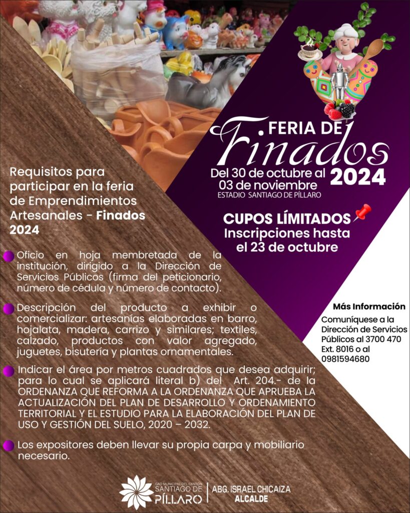 El GADM Pรญllaro invita a ser parte de la tradicional Feria de Emprendimientos Artesanales – Finados 2024