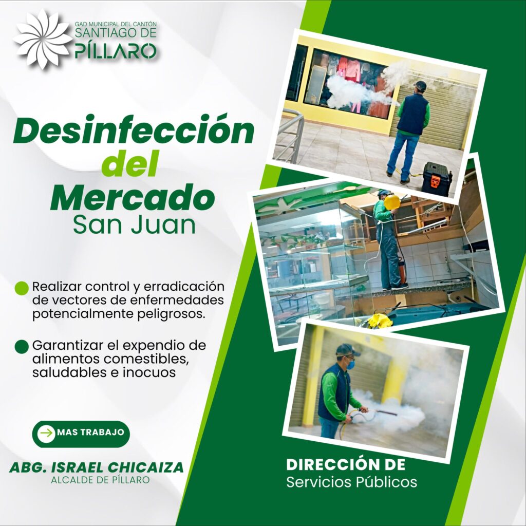 El lunes, 30 de septiembre de 2024, bajo el liderazgo del 𝐀𝐥𝐜𝐚𝐥𝐝𝐞 𝐝𝐞 𝐏𝐢́𝐥𝐥𝐚𝐫𝐨, 𝐈𝐬𝐫𝐚𝐞𝐥 𝐂𝐡𝐢𝐜𝐚𝐢𝐳𝐚 🌟, la Dirección de Servicios Públicos llevó a cabo una 𝐣𝐨𝐫𝐧𝐚𝐝𝐚 𝐝𝐞 𝐜𝐨𝐧𝐭𝐫𝐨𝐥 𝐝𝐞 𝐩𝐥𝐚𝐠𝐚𝐬 𝐲 𝐝𝐞𝐬𝐢𝐧𝐟𝐞𝐜𝐜𝐢𝐨́𝐧 𝐚𝐦𝐛𝐢𝐞𝐧𝐭𝐚𝐥 𝐞𝐧 𝐞𝐥 𝐌𝐞𝐫𝐜𝐚𝐝𝐨 𝐒𝐚𝐧 𝐉𝐮𝐚𝐧 🛒. Esta acción busca garantizar un espacio limpio y seguro para los comerciantes, adjudicatarios y visitantes, asegurando la venta de alimentos frescos, saludables y de calidad 🥦🍅.