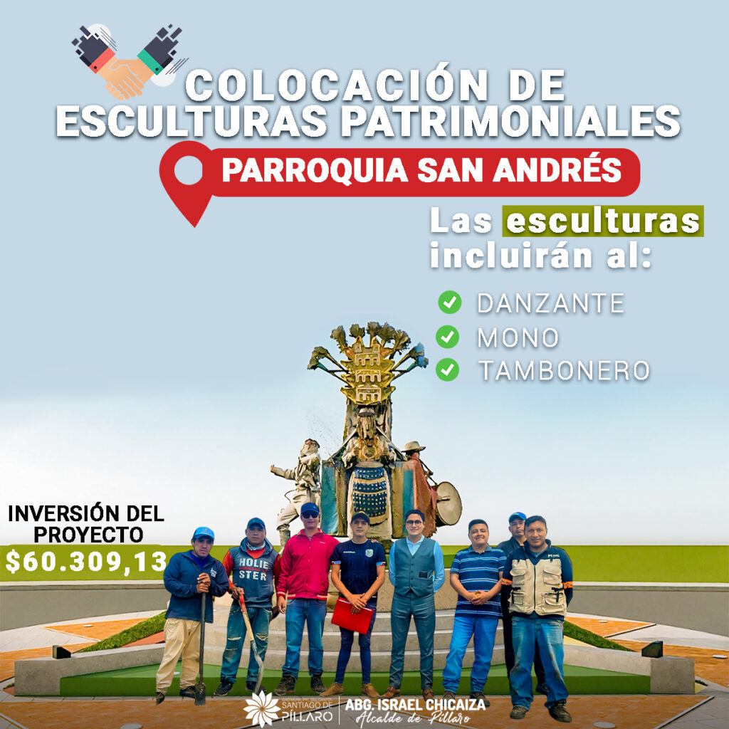 Estas esculturas representarán a personajes autóctonos de la comunidad Huapante Grande y de San Andrés, resaltando nuestra riqueza cultural e histórica. Este proyecto también contribuirá a mejorar la imagen del ingreso a nuestro Cantón.