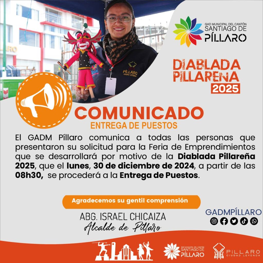 GaleríaNOTICIASPíllaro Al Día 31 diciembre, 2024 ALEX TIGSE 0 0 more now viewing 31 diciembre, 2024 ALEX TIGSE now playing 31 diciembre, 2024 ALEX TIGSE now playing 31 diciembre, 2024 ALEX TIGSE now playing ¡Más obras para nuestra gente! 31 diciembre, 2024 ALEX TIGSE now playing ¡Avanza la primera etapa de la reconstrucción del Estadio Santiago de Píllaro! 31 diciembre, 2024 ALEX TIGSE now playing ¡Obras que mejoran la calidad de vida! 31 diciembre, 2024 ALEX TIGSE now playing ¡Casa Abierta de la Escuela de Música! 31 diciembre, 2024 ALEX TIGSE now playing ¡Serenata a las candidatas a Reina de Píllaro! 31 diciembre, 2024 ALEX TIGSE now playing 31 diciembre, 2024 ALEX TIGSE now playing Las candidatas a Reina disfrutaron de un momento especial en Tears and Coffee 31 diciembre, 2024 ALEX TIGSE now playing 31 diciembre, 2024 ALEX TIGSE ENTREGA DE PUESTOS DE LA FERIA DE EMPRENDIMIENTOS DIABLADA PILLAREÑA 2025 previous ¡𝐅𝐄𝐑𝐈𝐀 𝐃𝐄 𝐀𝐑𝐓𝐄𝐒𝐀𝐍𝐎𝐒 𝐏𝐈𝐋𝐋𝐀𝐑𝐄𝐍̃𝐎𝐒! next LA DIABLADA PILLAREÑA PRESENTE EN GAMAVISIÓN ALEX TIGSE Related Posts 4 agosto, 2025 ALEX TIGSE 0 17 julio, 2025 ALEX TIGSE 0 ¡Más obras para nuestra gente! 17 julio, 2025 ALEX TIGSE 0LEAVE YOUR COMMENT Cancelar la respuestaTu dirección de correo electrónico no será publicada. Los campos obligatorios están marcados con * Guarda mi nombre, correo electrónico y web en este navegador para la próxima vez que comente.