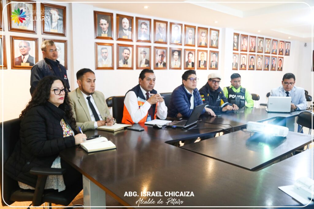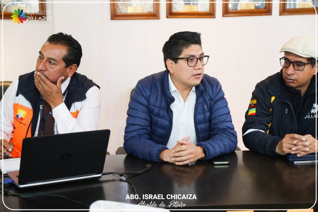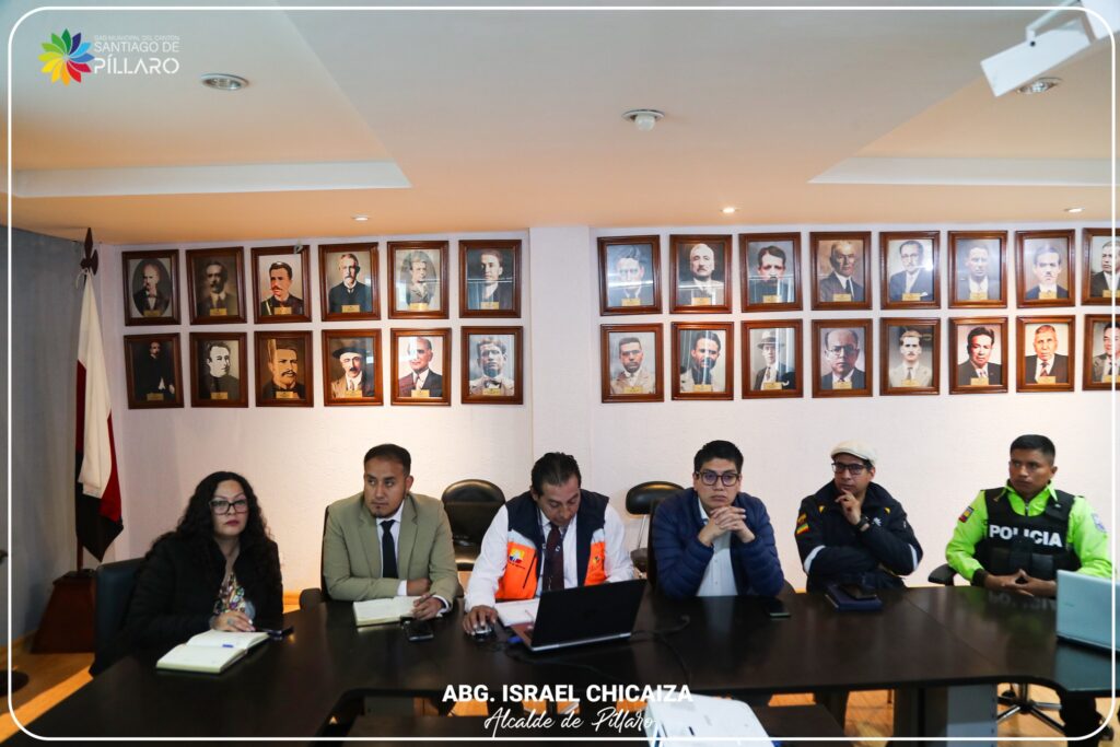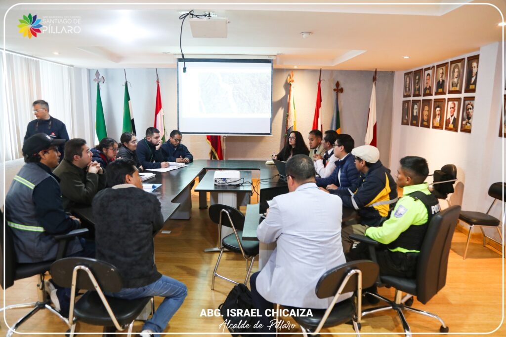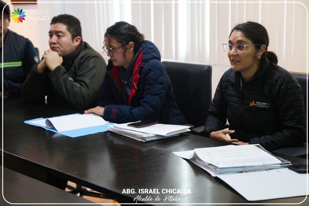 En la sala de concejo municipal de Píllaro, se llevó a cabo la reunión de trabajo 🤝 con representantes del Gobierno Provincial de Tungurahua y el contratista responsable de la construcción del sistema de descarga de aguas en la vía Ambato – Píllaro 🚧🚰.