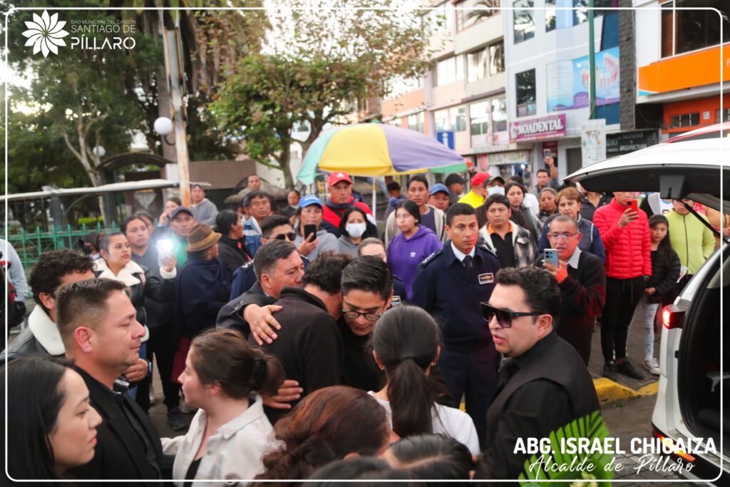 El Alcalde, Israel Chicaiza y la Primera Dama del Cantón, en un acto de solidaridad y respeto, recibieron el féretro de nuestra querida pillareña Diana Ruiz junto a sus familiares en las afueras de la Municipalidad.