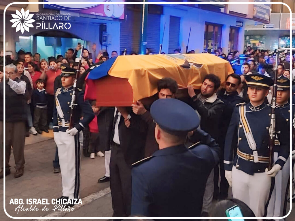 El GADM Santiago de Píllaro acuerda declarar 2 días de luto cantonal, y la bandera flamea a media asta como símbolo de homenaje a Diana Ruiz, quien con orgullo y valentía dejó un legado imborrable como la primera mujer pillareña en volar un avión supersónico.