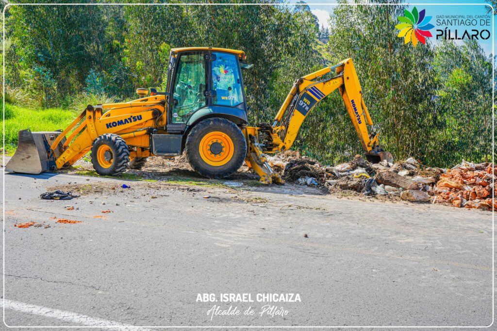 🚜 Desde la Municipalidad de Píllaro, el equipo técnico brindó apoyo en la identificación de zonas afectadas por contaminación y facilitó maquinaria para el traslado de los desechos y escombros recolectados.