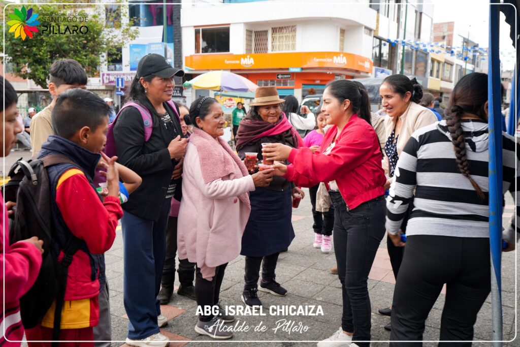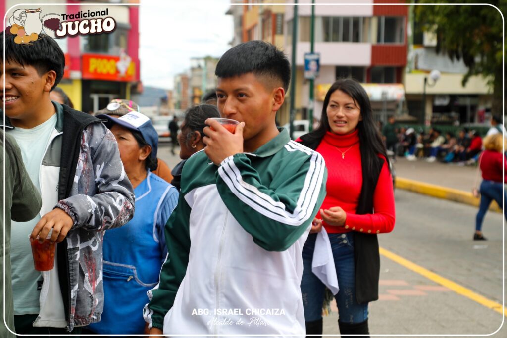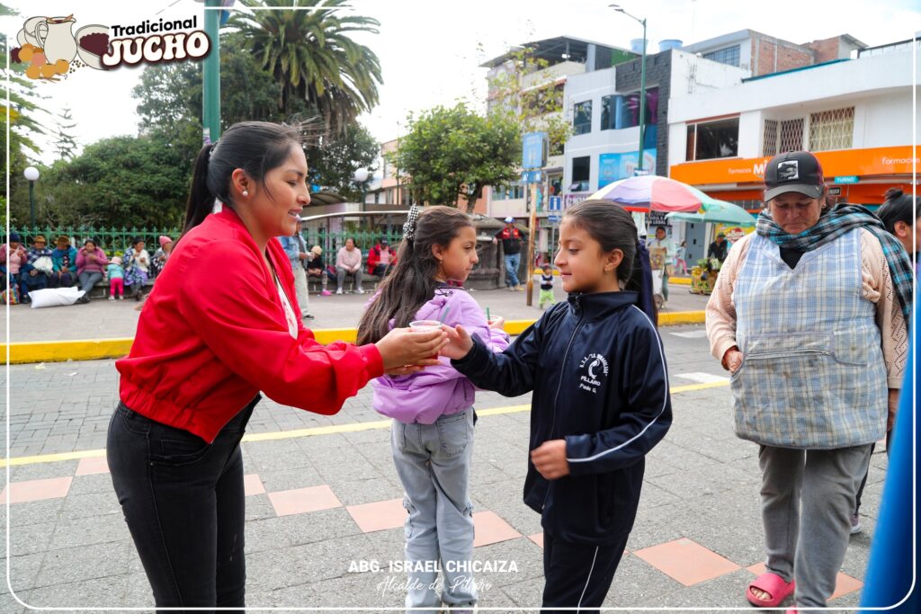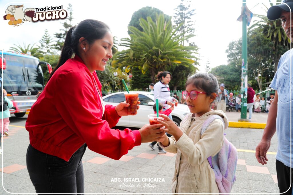 El Alcalde, Israel Chicaiza, junto a la Primera Dama, Evelyn Ramírez, compartieron con la comunidad una tradición llena de sabor, repartiendo más de 2000 vasos de jucho en el centro de nuestro cantón.